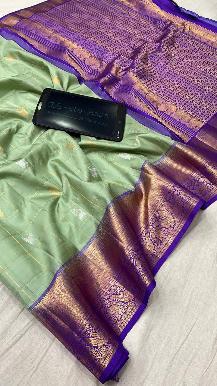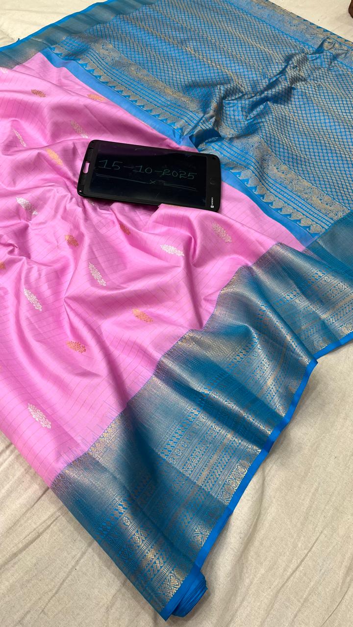 Exquisite Pure Pattu Gadwal Handloom Saree, crafted with rich silk and traditional zari borders. Lightweight yet luxurious, it blends elegance with heritage. Perfect for weddings, festive occasions, and cultural events, showcasing timeless craftsmanship and vibrant color combinations.